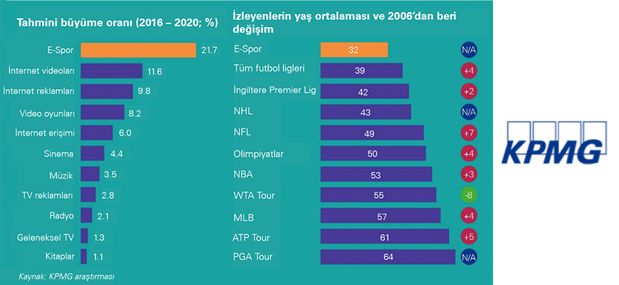 Koronavirüs pandemisi nedeniyle dünyadaki tüm spor organizasyonları dururken, bu süreçte E-Spor’a ilgi arttı. KPMG Football Benchmark ekibi E-Spor dünyasını araştırdı. Küresel karantina döneminde büyümeye devam eden E-Spor dünyasında oyun satışları yüzde 63 arttı. Araştırmaya göre E-Spor’un 2021 yılına kadar yüzde 21.7 oranında büyümesi, piyasa değerinin 1,5 milyar dolara çıkması bekleniyor. Aynı dönemde sinema endüstrisinin yüzde 4.4, müziğin yüzde 3.5, radyonun ise yüzde 2.1 küçülmesi öngörülüyor.