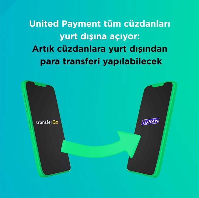 United Payment’ın geliştirdiği altyapı sayesinde Türkiye’de sunmaya başladığı cüzdana para transferi hizmetinin ilk örneği, TransferGo ve Turan uygulamaları arasında başladı. Bu hizmet ile dünya üzerindeki tüm TransferGo kullanıcıları Turan kullanıcılarına anında para transferi yapabilecek.