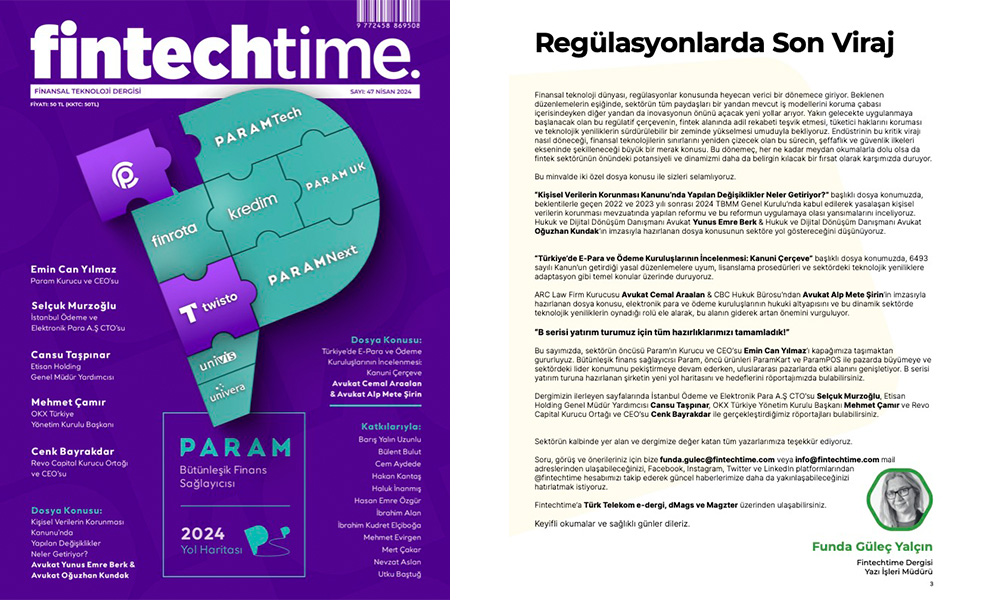 Dergimizin ilerleyen sayfalarında İstanbul Ödeme ve Elektronik Para A.Ş CTO’su Selçuk Murzoğlu, Etisan Holding Genel Müdür Yardımcısı Cansu Taşpınar, OKX Türkiye Yönetim Kurulu Başkanı Mehmet Çamır ve Revo Capital Kurucu Ortağı ve CEO’su Cenk Bayrakdar ile gerçekleştirdiğim röportajları okuyabilirsiniz.