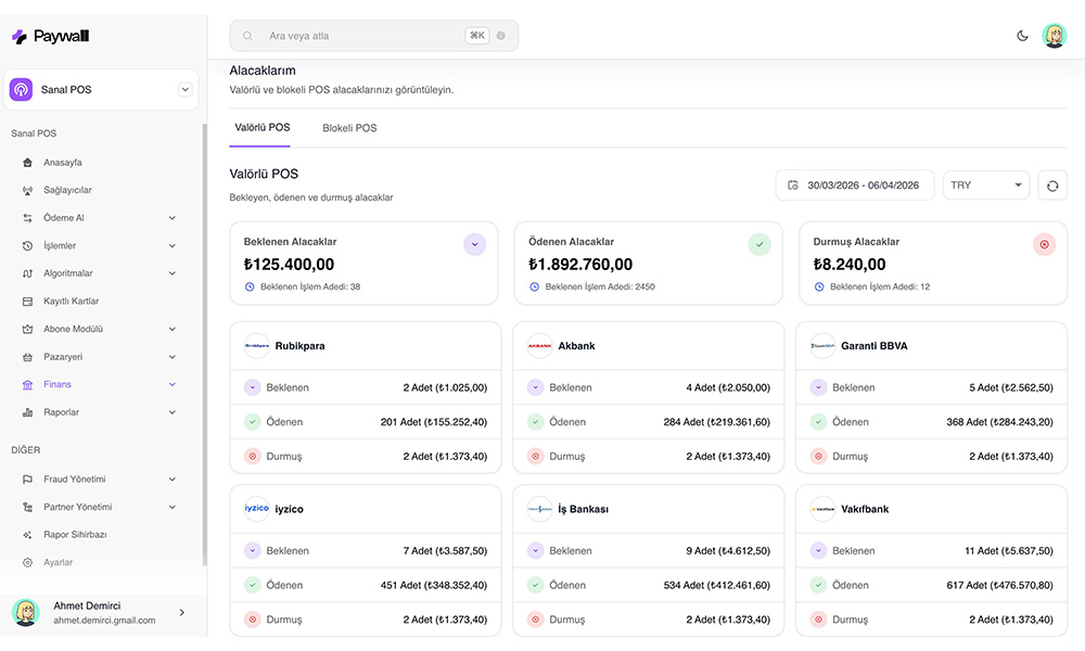 Ödeme sistemleri dünyasında verimlilik odaklı çözümler sunan Paywall, üye iş yerlerinin tüm finansal süreçlerini tek bir merkezden yönetmelerine olanak tanıyan yeni nesil ödeme panelini kullanıma sundu. Hazırlanan bu teknolojik arayüz, işletmelerin farklı ödeme kuruluşları ve bankalarla olan entegrasyonlarını konsolide ederek operasyonel karmaşayı ortadan kaldırıyor.