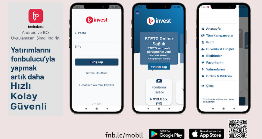 Akıllı telefonlarla fnb.lc/mobil üzerinden indirilebilen uygulamayla, fonbulucu üzerinden fonlamaya çıkan girişimlere ortak olmak isteyen bireysel ve kurumsal yatırımcıların işlemleri çok daha kolay ve pratik hale getirildi.