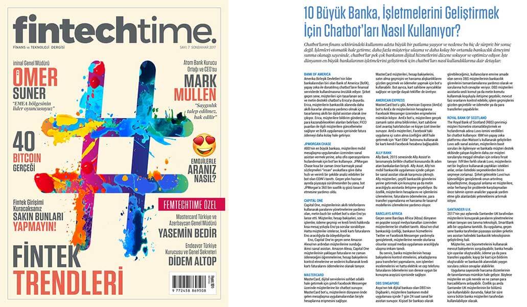 Fintechtime 2017 Sonbahar Sayısı konu başlıkları ve “Chatbotlar” konusu yazımda sizi bekliyor.
