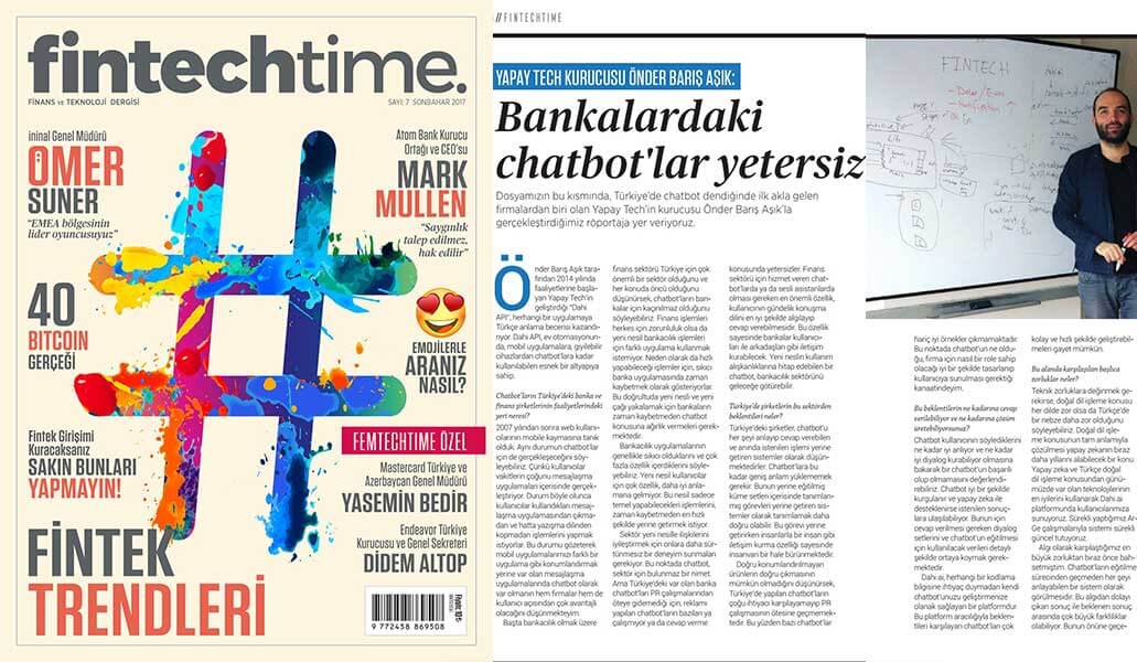 yazının tamamını, konuyla ilgili olarak YapayTech Kurucusu Önder Barış Aşık ile geçekleştirdiğim röportajı ve “Türkiye’de Finans Kurumlarının Chatbot Karnesi” ni Fintechtime Dergisi Sonbahar sayısında okuyabilirsiniz.