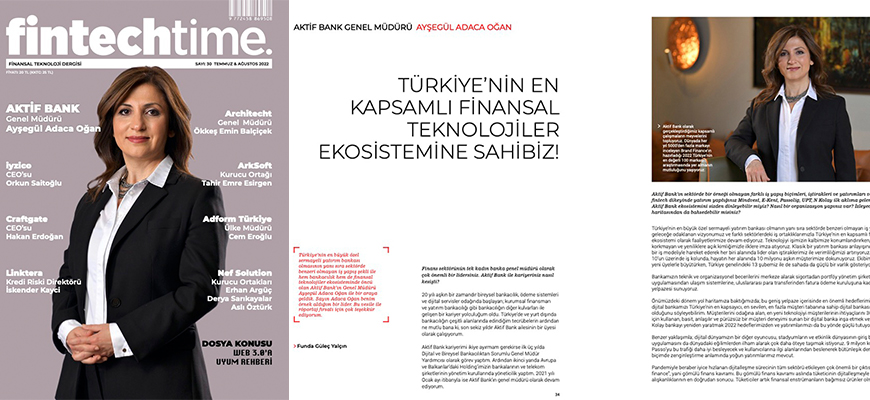 Türkiye’nin en büyük özel sermayeli yatırım bankası olmasının yanı sıra sektörde benzeri olmayan iş yapış şekli ile hem bankacılık hem de finansal teknolojiler ekosisteminde ezber bozan Aktif Bank’ın Genel Müdürü Ayşegül Adaca Oğan’ı kapağımıza taşıdığımız bu özel sayımız yine çok konuşulacak. Sayın Adaca Oğan, sektörün en önemli kadın lideri ve benim örnek aldığım bir isim. Bu vesile ile röportaj fırsatı için kendisine çok teşekkür ediyorum.