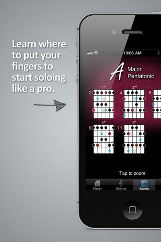 Gitar öğrenmek isteyenlerin favorisi olabilecek kadar başarılı ve ücretsiz bu uygulamanın boyutu biraz yüksek ancak başarılı grafikleri ile notaları doğru bir şekilde çıkarmanın yollarını uygulamalı olarak gösteriyor. iOS4 ve üstü; iPad, iPod Touch ve iPhone cihazlarınızda kullanabilirsiniz.