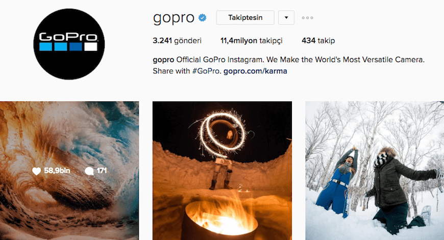 Bunu en iyi kullanan markalardan biri GoPro. Tamamen kullanıcılar tarafından üretilen içerikleri tekrar paylaşarak Instagram profillerini besleyen bu marka son derece başarılı.