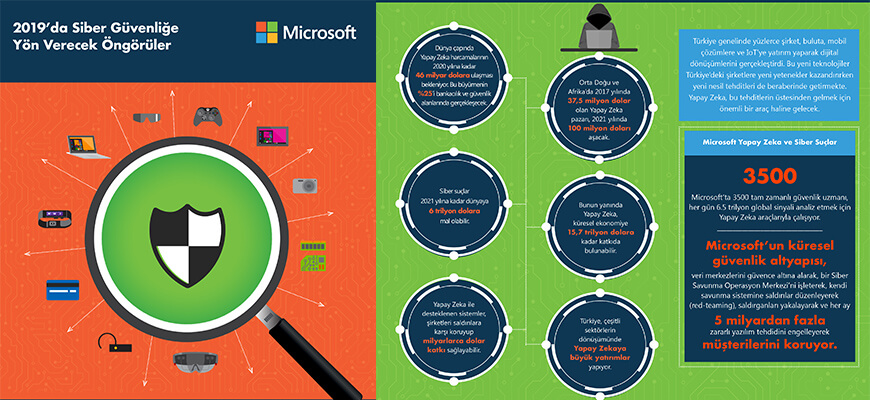 Microsoft, siber tehditlerin üstesinden gelmek için, 2019’da kullanılacak yöntemleri ve güvenlikle ilgili öngörülerini de paylaştı.