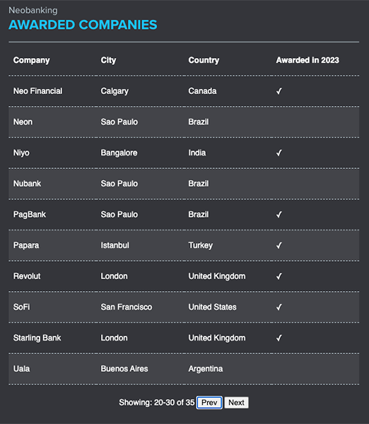 CNBC ve Statista, 2024 yılı için dünyanın en iyi 250 fintech şirketini belirlemek amacıyla ortak bir çalışma yürütmüştür. Bu listede yer alan şirketler, sekiz farklı piyasa segmentine yayıldı. Akabinde genel ve segment spesifik KPI’ların analiz ve ağırlıklandırılmasıyla seçildiler.