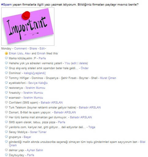 Friendfeed üzerinde arkadaşlarıma spam yapan firmaları sordum, yanıtların görüntüsünü aldım. İşte ben gibi dertliler;