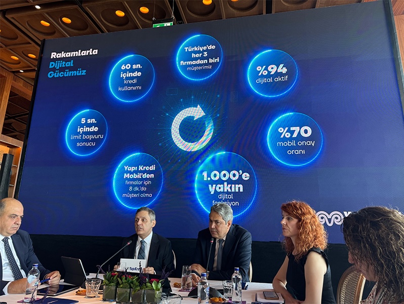Doğan, yalnızca bireylerde değil, işletmelerde de dijitalleşmeyi hızlandırdıklarını vurguladı. Fiziki ya da sanal ödeme kaydedici cihaz başvurularının mobil ya da web üzerinden yapılabilmesi, dijital teminat mektuplarının hazırlanabilmesi, cepte senet gibi çözümlerin mobil ortamda yönetilebilmesi, Yapı Kredi’nin iş dünyasına sunduğu yüksek teknoloji destekli hizmetlerin başında geliyor. Banka, birkaç saniyede kredi tanımlama ve gayrinakdi çözümler sunma altyapısıyla da hızlı finansmana erişim imkânı sağlıyor.