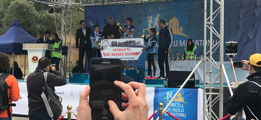 Yarı maratonda dereceye giren Gelibolu Spor Triatlon Kulübü gençleri hepimizi gülümsetti. İlk üç sırayı paylaşan Seda Kurtuldu, Jale Başak, Ebru Yazıcıoğlu’nun tek istediği Gelibolu’ya bir yüzme havuzu. Umarım bu dileklerini biri gerçekleştirebilir.