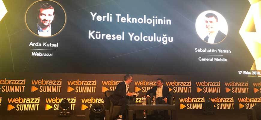 Arda Kutsal’ın konuğu General Mobile Yönetim Kurulu Başkanı Sebahattin Yaman. @sebahattinyamn Hedeflerini paylaşırken, yerli üretimin önemine odaklanıyor. Konuşması heyecan verici, en son ürünleri General Mobile GM 9 Pro’yu ısrarlar öneririm.@generalmobile ????#webrazzi18 pic.twitter.com/un8RJMbFOP
